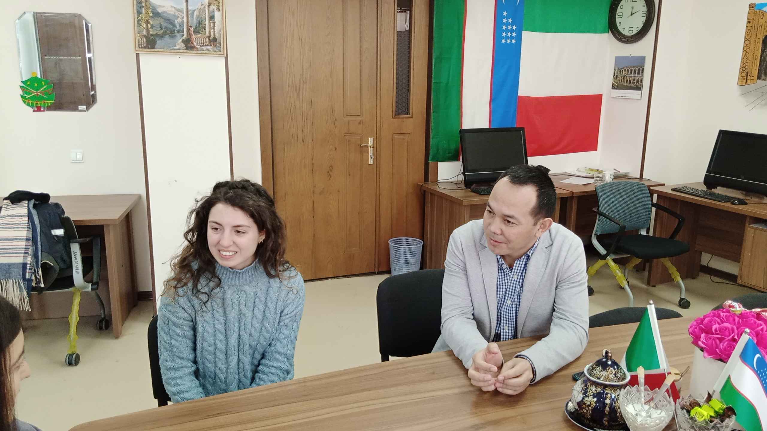 Durante la conversazione con Veronica Turrini, sono stati dicussi argomenti relativi al sistema educativo ed istruttivo dell'Uzbekistan, ai luoghi di interesse turistico del nostro paese, ai processi istruttivi nella nostra università ed agli altri argomenti. A sua volta, la tirocinante ha fornito informazioni su se stesso, ha raccontato dei suoi interessi. Veronica Turrini parla inglese, spagnolo, farsi ed è interessato all'uzbeko.